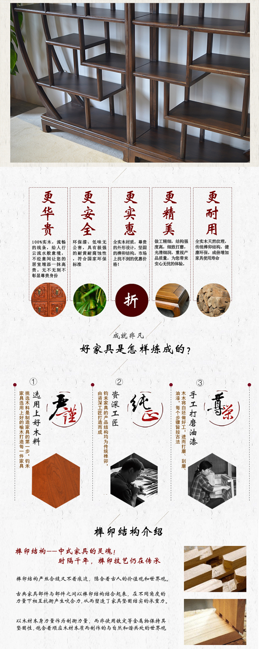 产品简介:时代印记中式的传承,星河家具年工厂销售 ,致力于传统明清家具的传承和创新,将全实木中式博古架的文化底蕴融于自然的设计当中,让老榆木隔断家具多宝阁系列家具走进千家万户,这款仿古陈列柜置物架造型饱满、大方,比例尺寸合适,轮廓简练舒展,结构,榫卯 ,精于选料配料,中式老榆木家具本身的自然纹理和色彩。