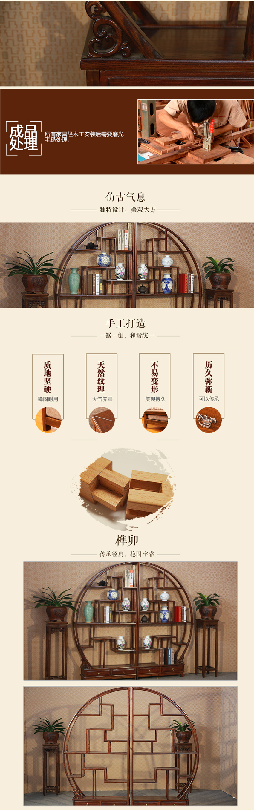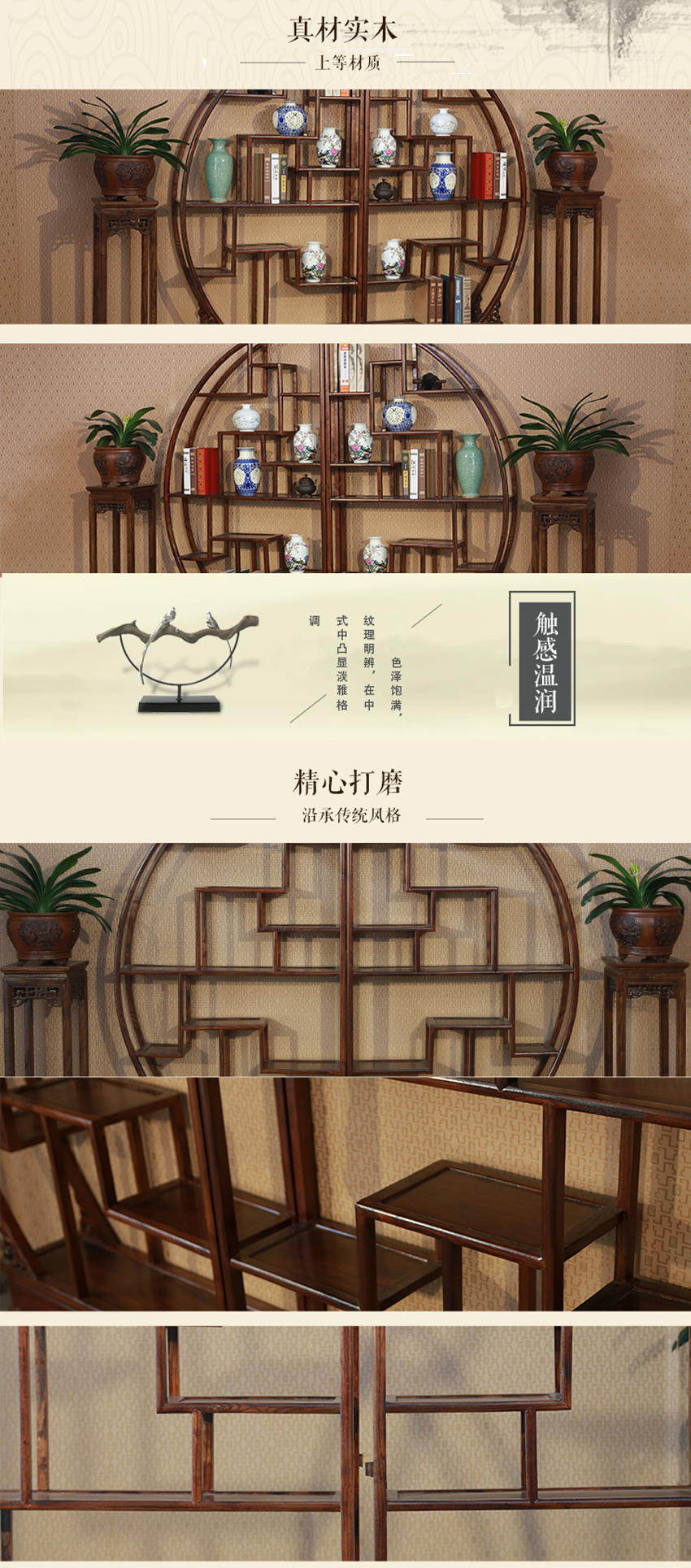 产品简介:这款老榆木中式榆木博古架采用大气稳重的实木框架,给您舒适享受,人性化的设计 贴心!清晰可见的北榆木纹理,让老榆木博古架屏风有着一种 的视觉美感,与复古风 交融。这款老榆木天圆地方多宝阁古典大气的设计,简单而不失美观,稳固结实。千锤百炼的技艺、的实木材质,让这款明清仿古老榆木家具展现稳重大气之作。经典传统设计让居室散发着挂悠然的魅力。