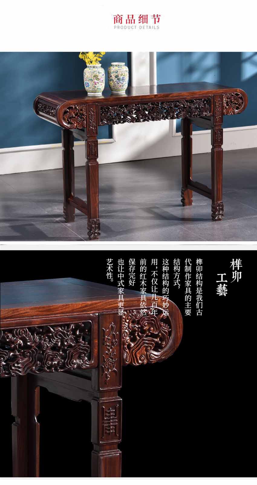 4. 产品简介:此款老榆木书法桌做工精美,镂空雕刻凸显细腻工艺。