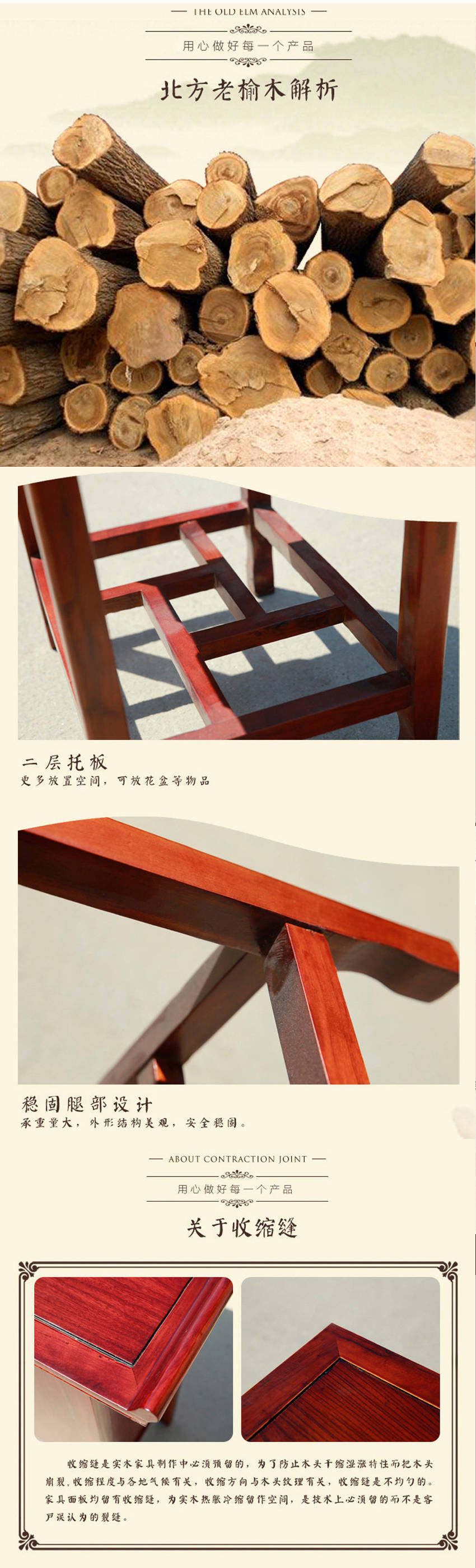 3.产品简介:榆木本身质地坚韧,具有   强的蚀性,由此制成的家具也结实,而且越用越丰润。买古典家具,就来星河老榆木家具厂。