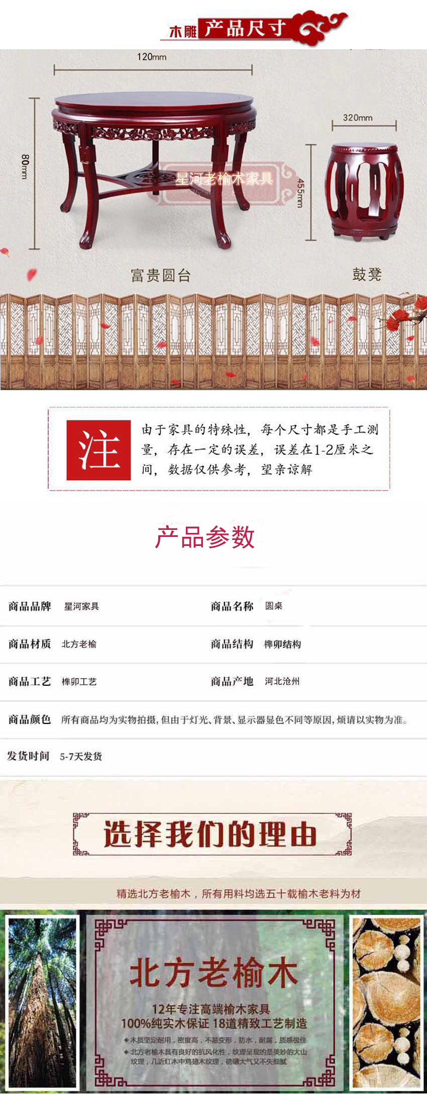 产品简介:此款老榆木圆桌,直径1000mm ,高:780mm,适合4-6人