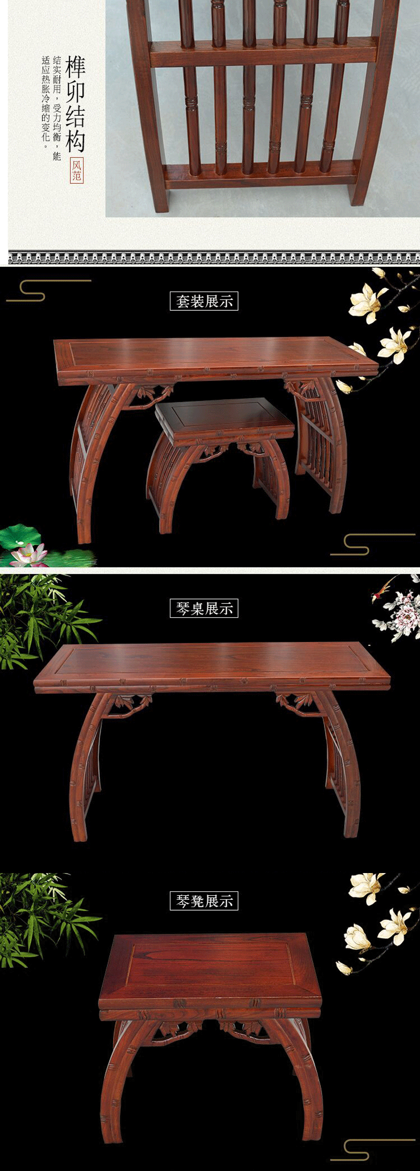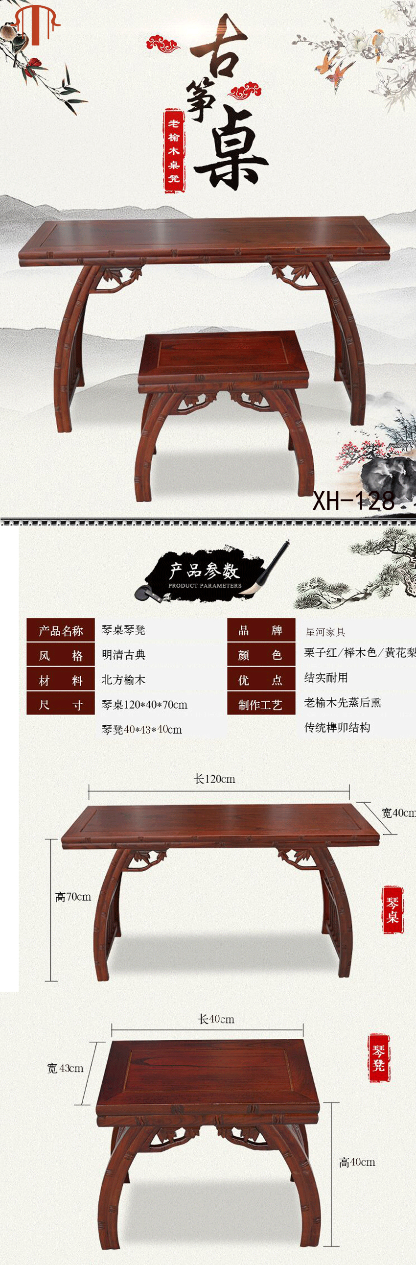 产品简介:这款老榆木中式琴案,是一款适合家用老榆木琴案。在古代琴案是抚琴时的桌子,琴桌形体不大,比一般桌子略矮些,桌面似条桌,就像星河的这款老榆木琴桌凳琴案,窄而长桌四面有装饰的雕花或围板,下底由两层木板组成,其中留出透气孔,使桌子产生共鸣。在明代曹明仲《格古要论》记载:“琴桌须用维摩详,高二尺八寸,可容三琴,长过琴一尺许为佳。”沧州星河家具专注明清仿古老榆木家具的制作生产!