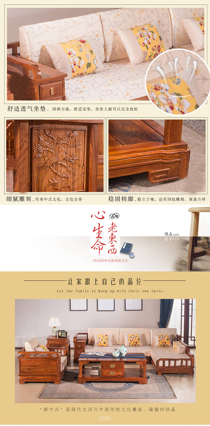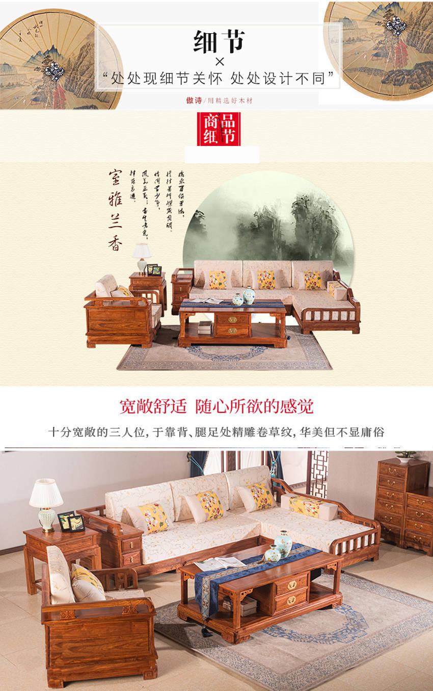 4. 产品简介:这款老榆木大料客厅家具,追寻都市森林中一份怡静,展现一种新中式的居家生活,此款韩式榆木转角沙发在平凡、简单的线条中挥洒自由与浪漫。在客厅中摆放这样一款大料中式老榆木家具,仿佛 有淡淡的花香在空气中四溢,有飘渺的光影在空气中流淌,老榆木大料家具陪伴您诗意的空间在每 ,让韩式榆木家具在温柔时光中将我们拥抱。