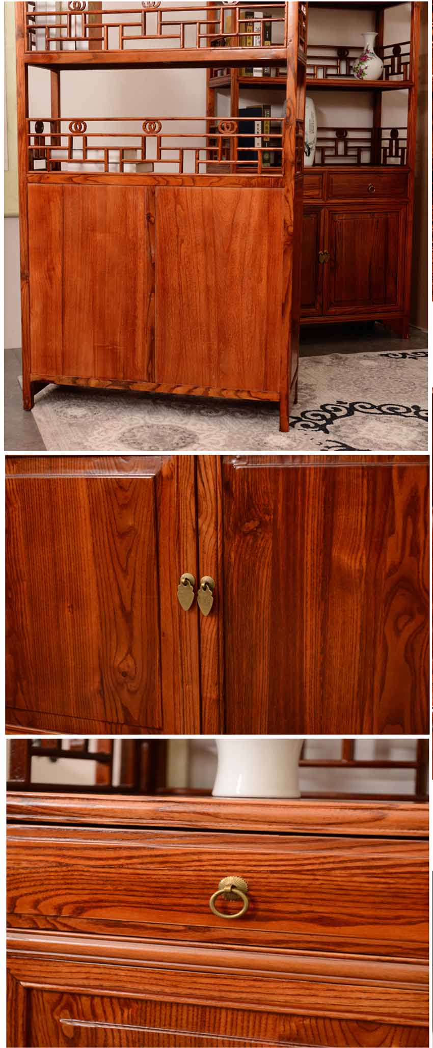 产品简介:星河这款老榆木古典中式书柜将大气典雅挥洒一室,传承中式!此款老榆木组合书柜制作,凝聚千年工艺文化精华,经典不忽而涌; 匠心、 雕刻,让这款老榆木实木组合书柜彰显尊贵高雅的气派和辉煌感;这款老榆木书柜每一处都能展现工艺之精髓。