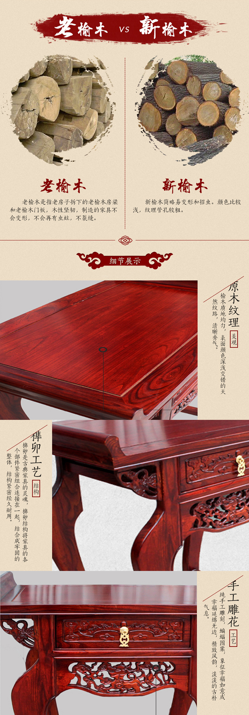 4. 产品简介:榆木实木原料佛龛套柜的稳固,中式镂空雕刻庄严设计凸显文化。星河老榆木佛龛批发,专注 。