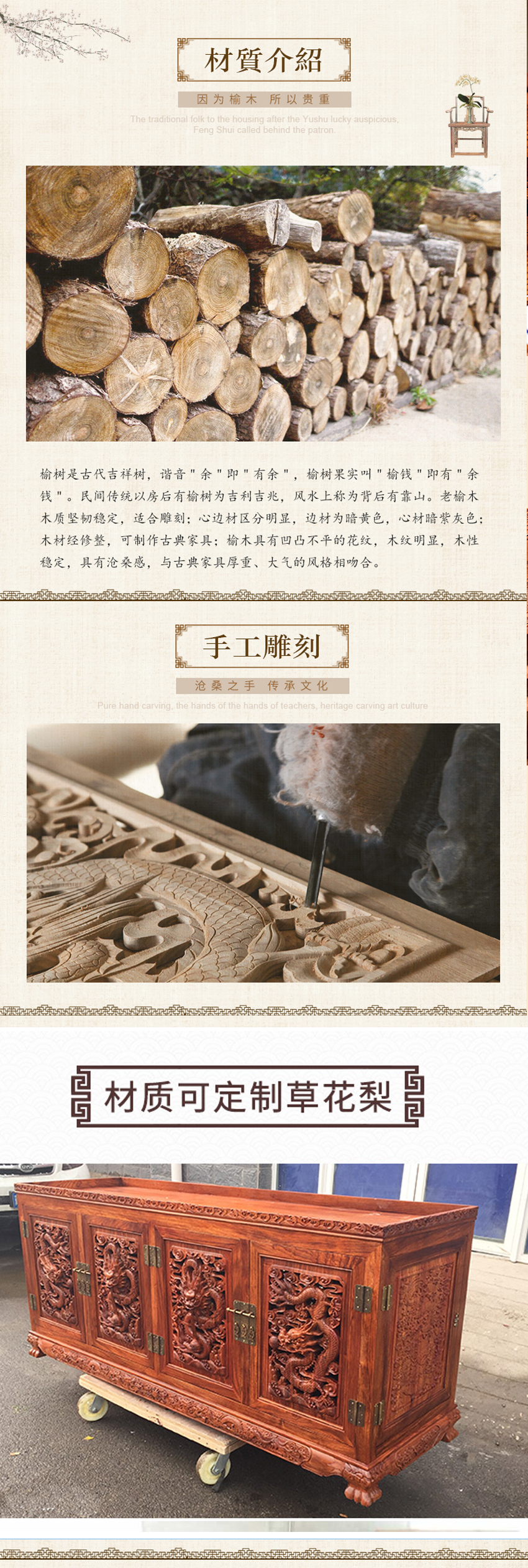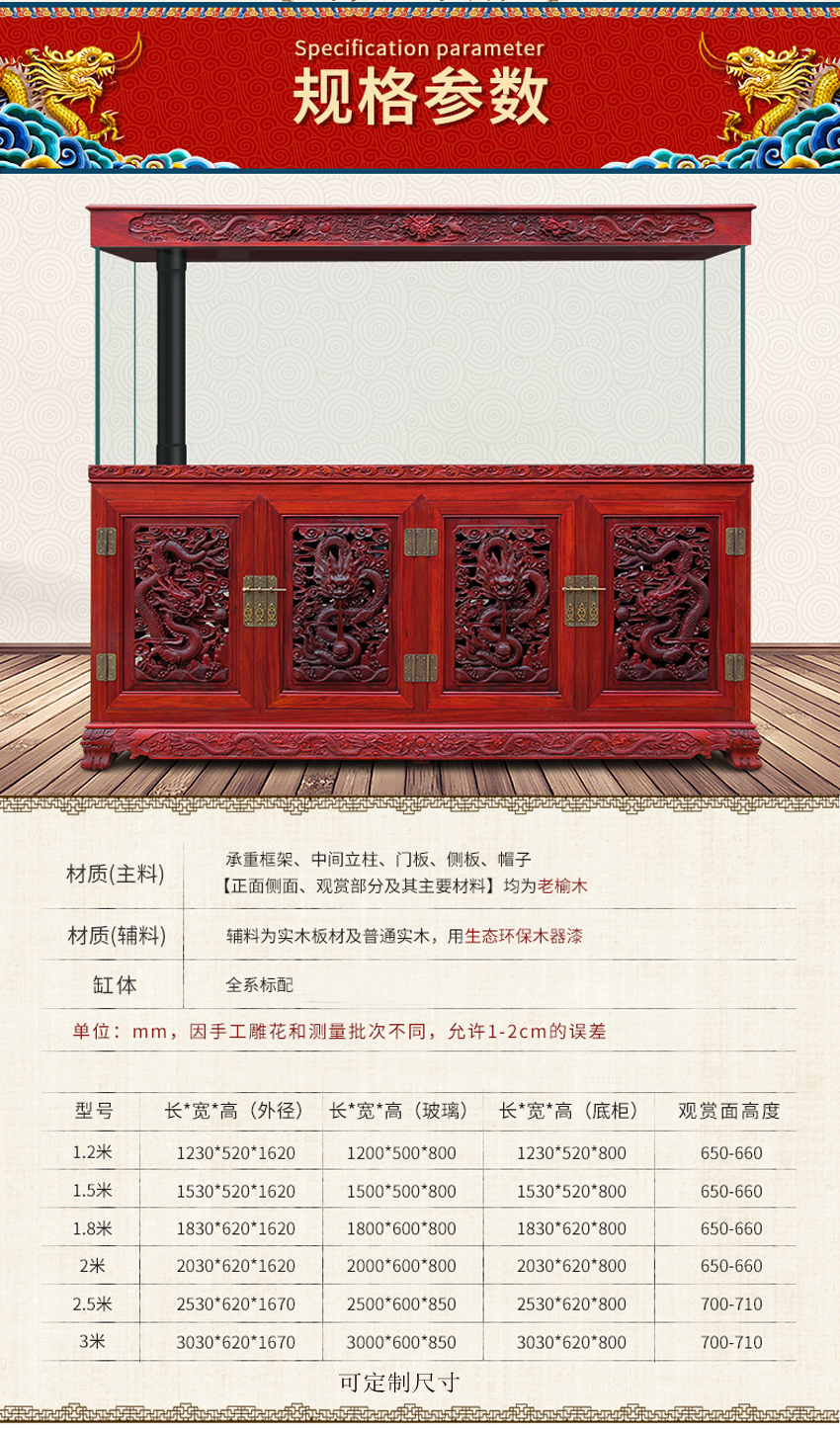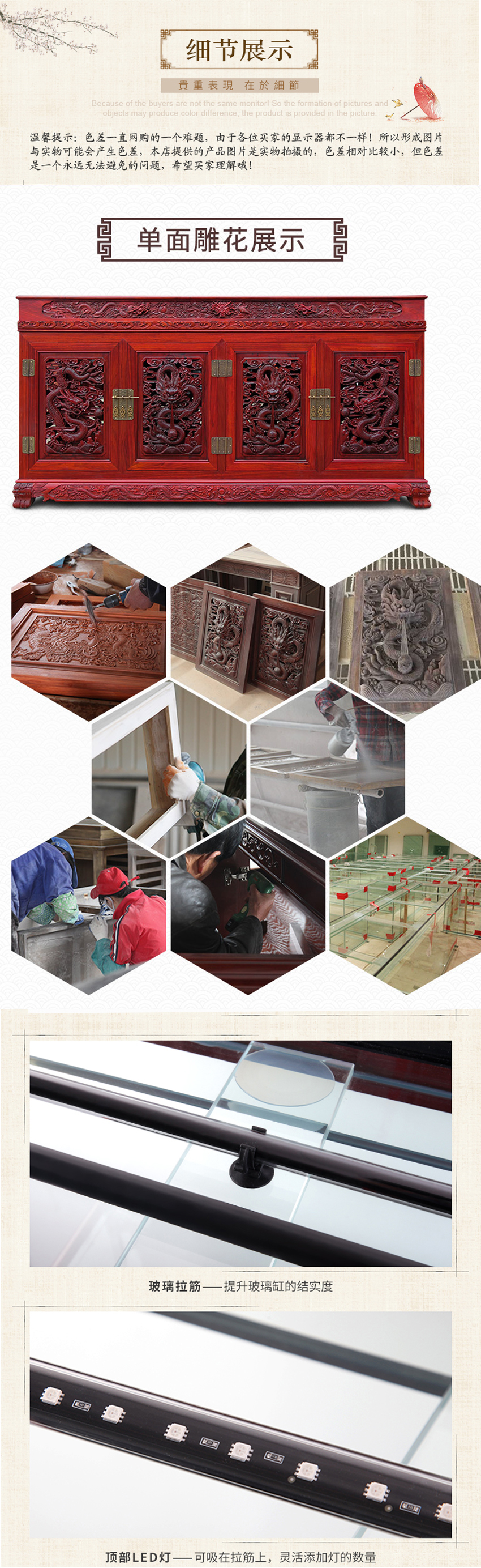3. 产品简介:此款立体大老榆木鱼缸采用雕花工艺,做工,造型古朴典雅,适合摆放于酒店,企业办公室,彰显大气,。