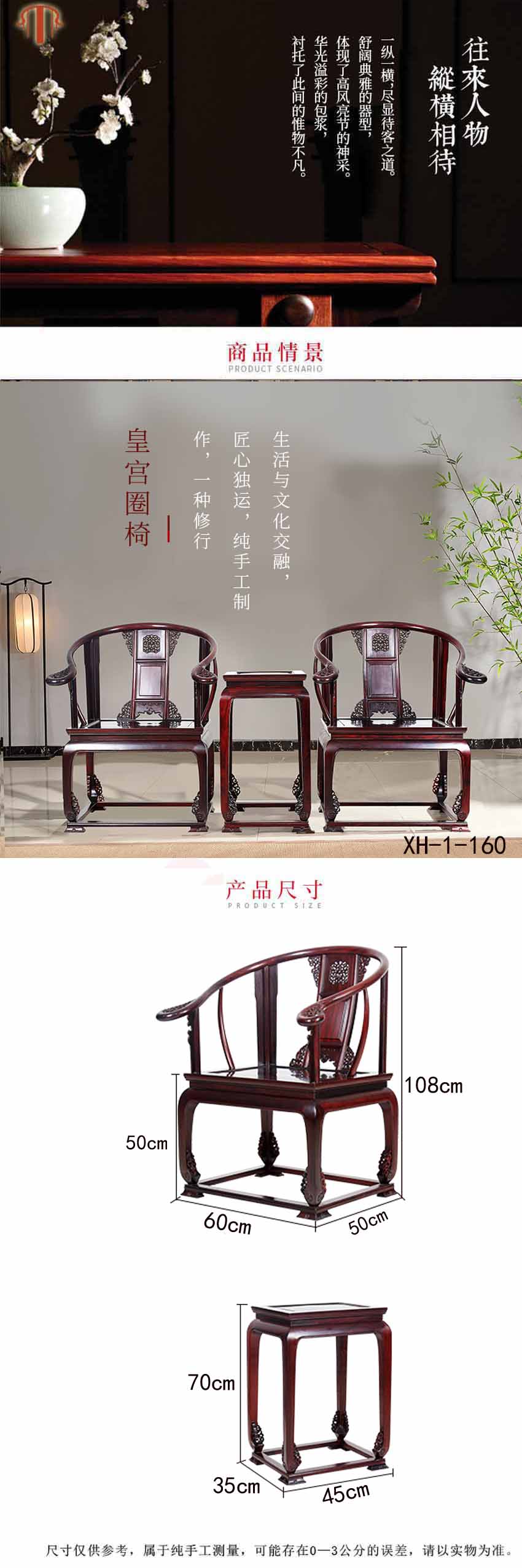 4. 产品简介:这款老榆木仿明清代圈椅,用 传统的榫卯工艺,传承中国古典家具之精髓,展现老榆木皇宫圈椅历史文化之韵味,处处体现传承中式榆木家具的魅力,这款老榆木实木三件套圈椅 匠心集古人智 慧与明清仿古老榆木家具之大成,一榫一卯都倾注了匠师的技艺和机制追求,几十年几 不变。此款圈椅雕刻华丽,工艺水平 ,受许多文人雅士追捧。
