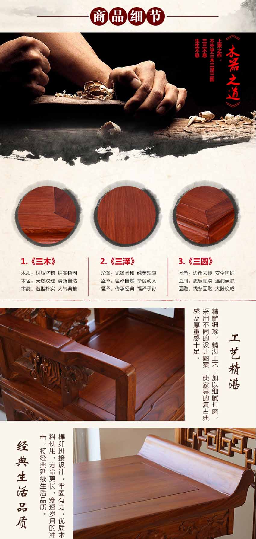 4. 产品简介:这款老榆木中堂六件套做工考究,用料充足,高品味, 。结构简单、榫卯结构,连接牢固, 工巧美。面板木纹美观,整体造型美观大气,放在屋里很有古典传统气息。沧州星河老榆木家具 批发厂家,欢迎您的光临!