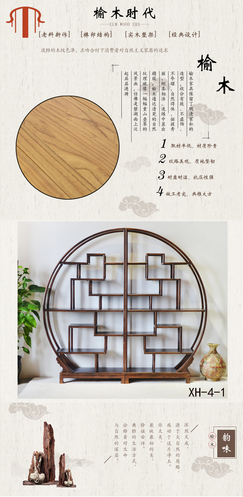 产品简介:时代印记中式的传承,星河家具年工厂销售 ,致力于传统明清家具的传承和创新,将全实木中式博古架的文化底蕴融于自然的设计当中,让老榆木隔断家具多宝阁系列家具走进千家万户,这款仿古陈列柜置物架造型饱满、大方,比例尺寸合适,轮廓简练舒展,结构,榫卯 ,精于选料配料,中式老榆木家具本身的自然纹理和色彩。