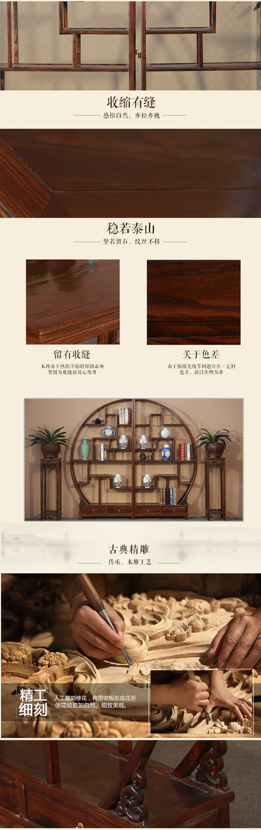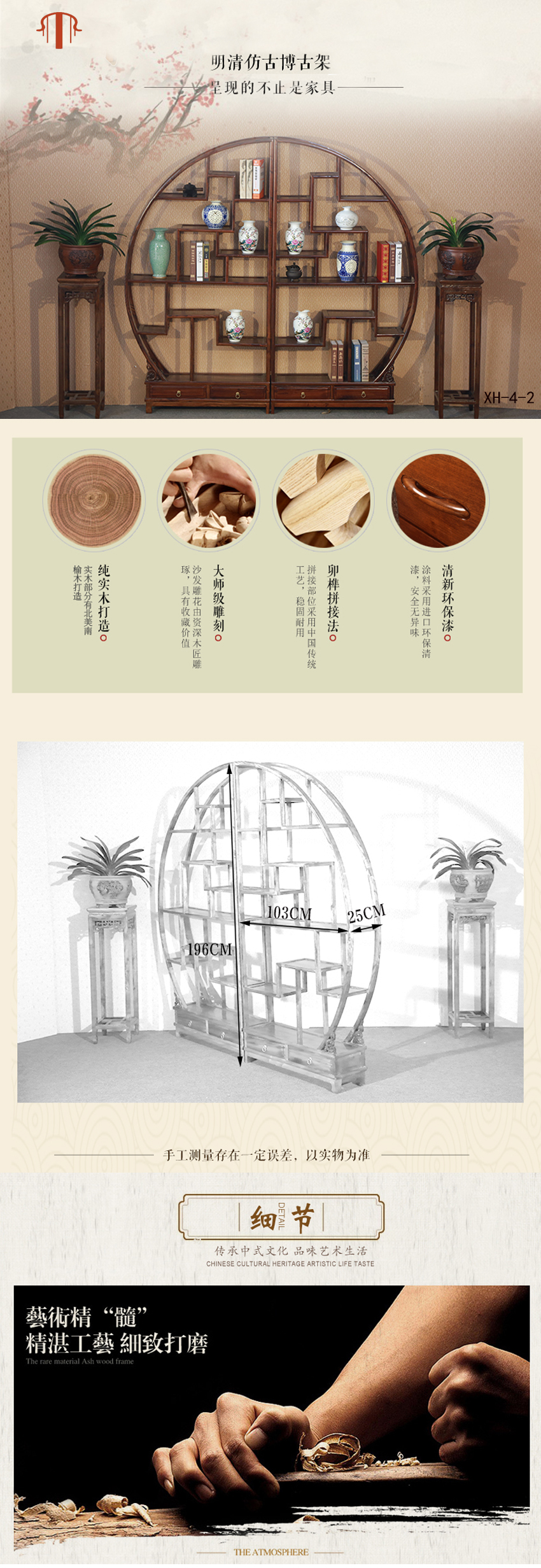 产品简介:这款老榆木中式榆木博古架采用大气稳重的实木框架,给您舒适享受,人性化的设计 贴心!清晰可见的北榆木纹理,让老榆木博古架屏风有着一种 的视觉美感,与复古风 交融。这款老榆木天圆地方多宝阁古典大气的设计,简单而不失美观,稳固结实。千锤百炼的技艺、的实木材质,让这款明清仿古老榆木家具展现稳重大气之作。经典传统设计让居室散发着挂悠然的魅力。