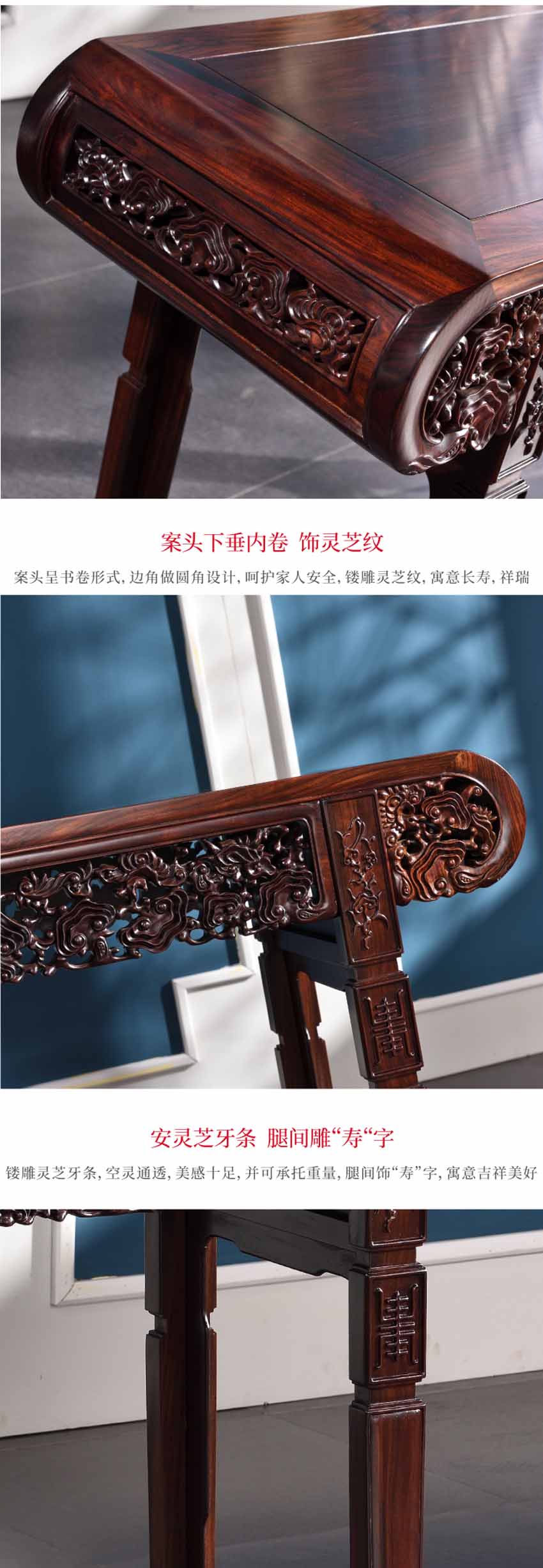 4. 产品简介:此款老榆木书法桌做工精美,镂空雕刻凸显细腻工艺。