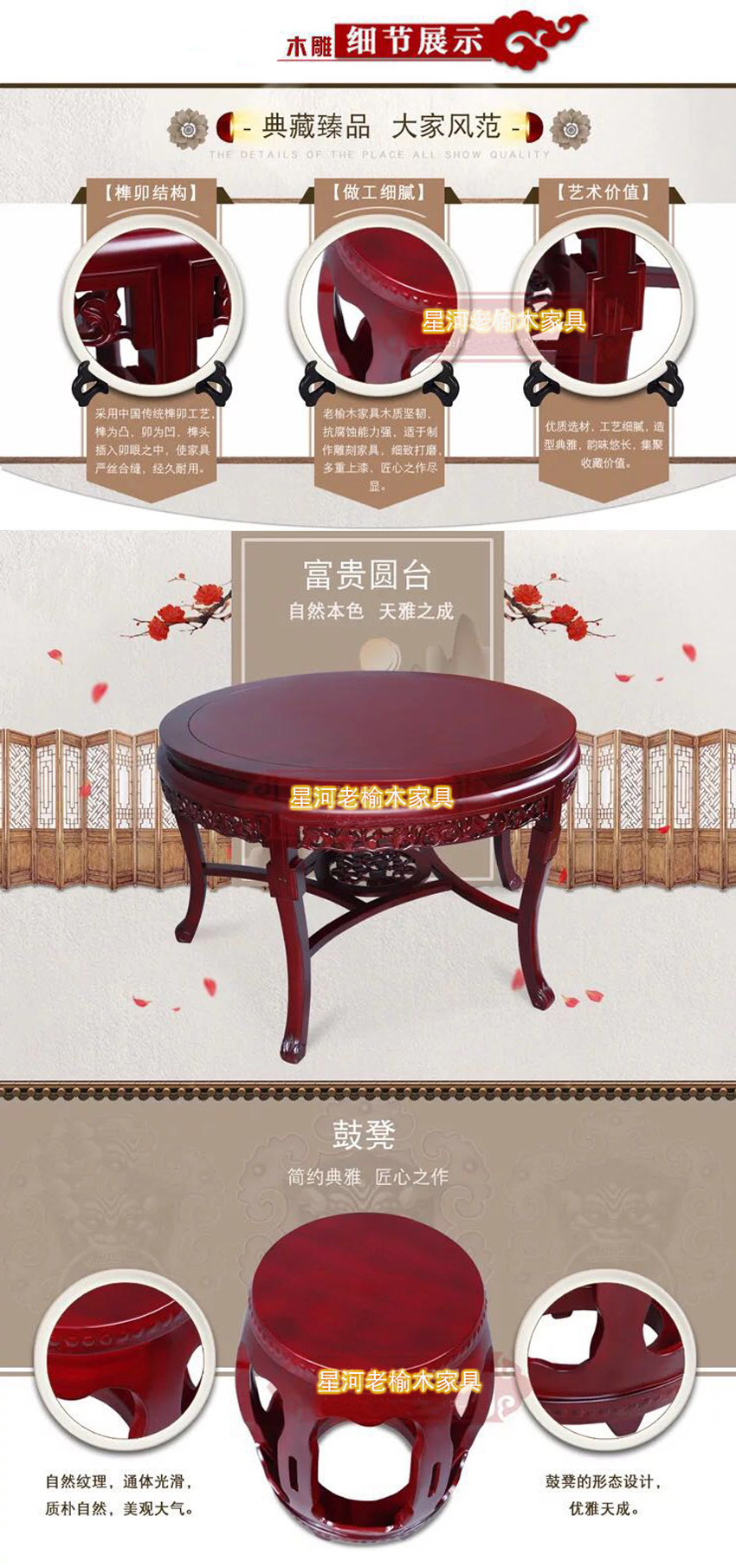 产品简介:此款老榆木圆桌,直径1000mm ,高:780mm,适合4-6人