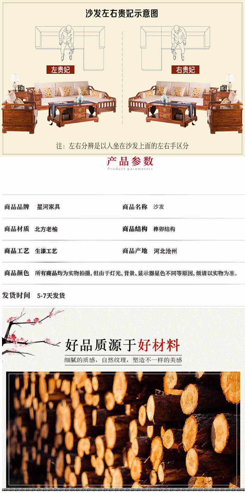1. 产品材质:老榆木