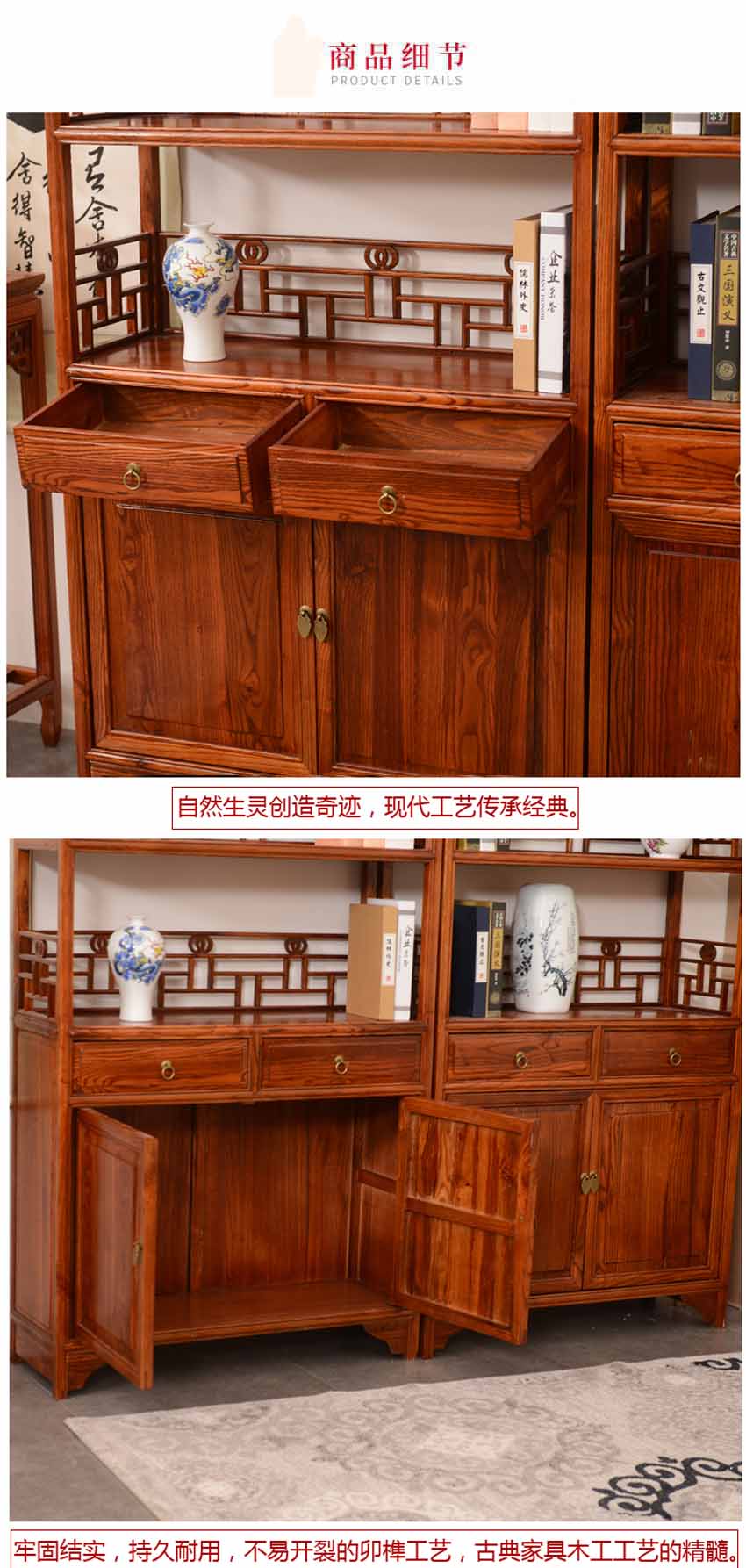产品简介:星河这款老榆木古典中式书柜将大气典雅挥洒一室,传承中式!此款老榆木组合书柜制作,凝聚千年工艺文化精华,经典不忽而涌; 匠心、 雕刻,让这款老榆木实木组合书柜彰显尊贵高雅的气派和辉煌感;这款老榆木书柜每一处都能展现工艺之精髓。
