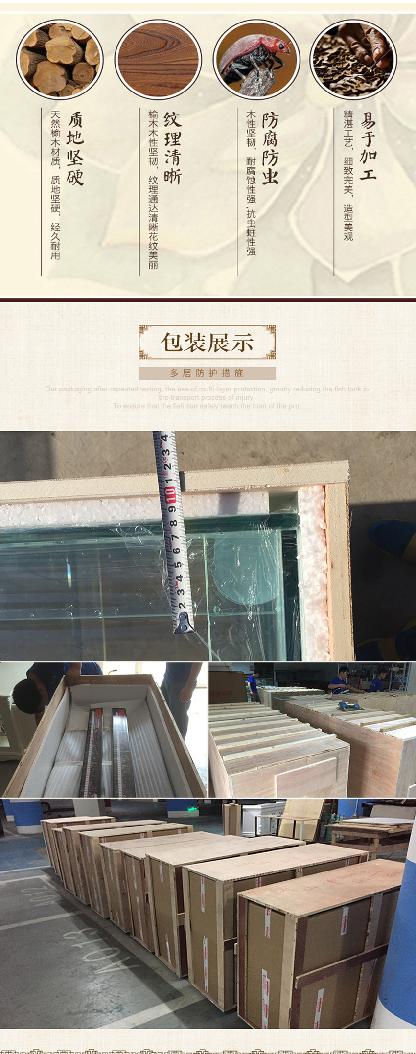 3. 产品简介:此款立体大老榆木鱼缸采用雕花工艺,做工,造型古朴典雅,适合摆放于酒店,企业办公室,彰显大气,。