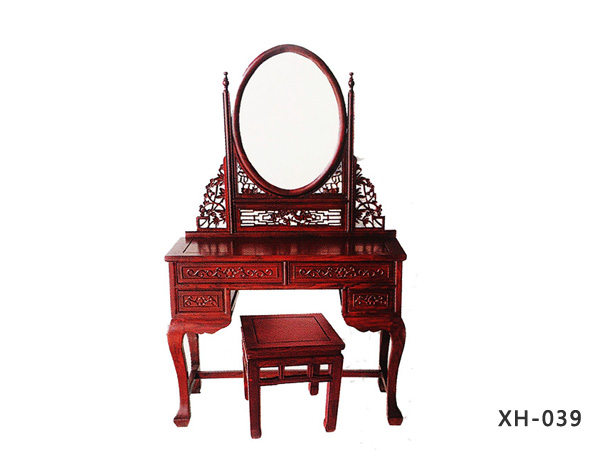 3.产品简介:爱美女士的好选择:星河老榆木圆梳妆台。这款老榆木卧室梳妆台,是沧州星河老榆木家具生产的实木梳妆台镜子款式之一,星河家具坚持“绿色低甲醛,健康无污染”的经营理念,为星河老榆木梳妆台系列结缘了上万客户, 此款中式实木梳妆台造型为圆镜设计,架子架为镂空雕花设计,桌面下方设有四个储物抽屉,方便放置化妆品等物,储物能力强,是您爱美的不二选择。